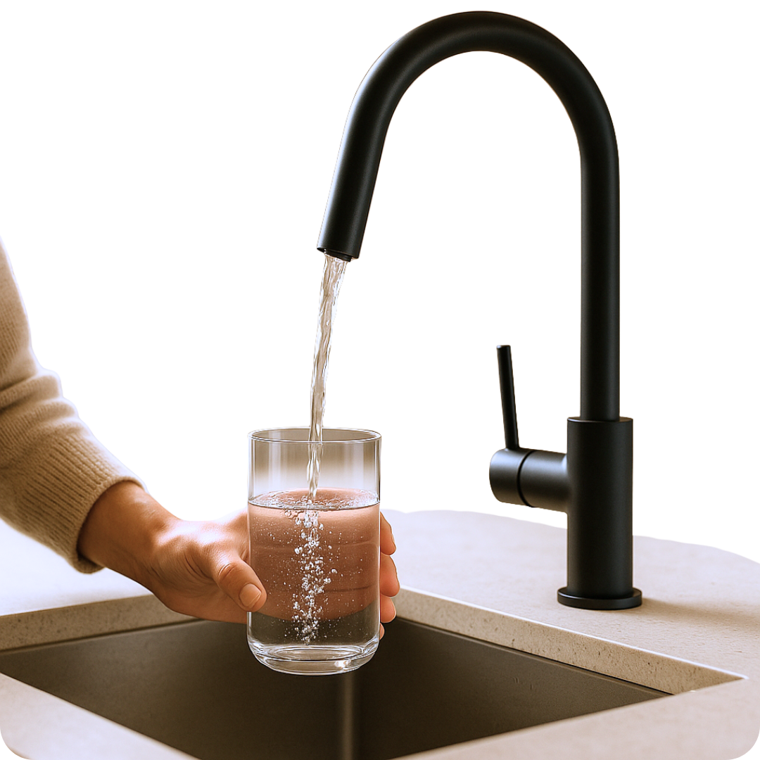 Our Oaks VitaSource™ Drinking System purifies the water you drink and cook with, removing up to 99.9% of contaminants — including chlorine, lead, fluoride, PFAS, and microplastics — for clean, great-tasting water straight from your tap.